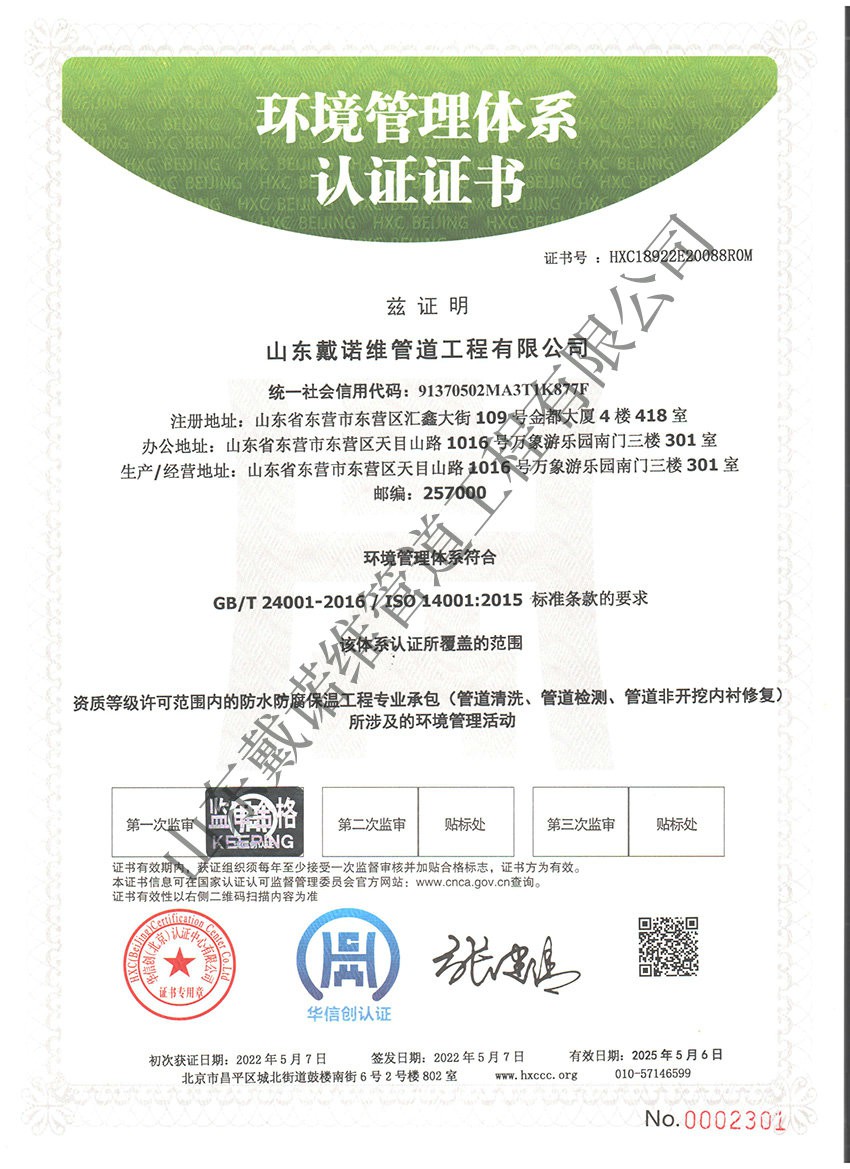 管道非開(kāi)挖修復(fù)工程服務(wù)企業(yè)資質(zhì)證書(shū)